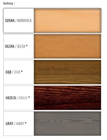 Kolory sosny barwionej: (Sosna Olcha, Sosna Dąb, Sosna Orzech, Sosna Grey)