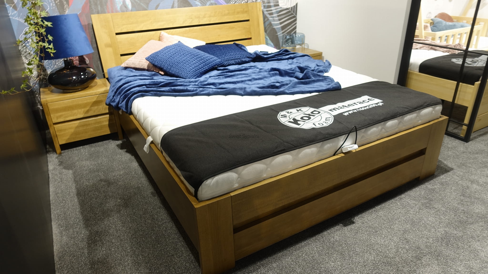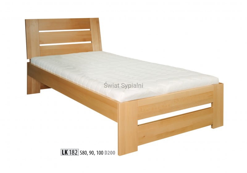 Łóżko wykonane z litego drewna bukowego. Najpopularniejszy bukowy model łóżka LK 192 / LK 182. Klasyczny, lekko wychylony zagłówek oraz zanóżek dają ramę by zastosować stelaż i materac o dowolnych parametrach. Do łóżka proponujemy dostawić stolik nocny - szafkę nocną. Wolne miejsce pod łóżkiem proponujemy uzupełnić funkcjonalną szufladą. Łóżko stabilne, wytrzymałe do zamówienia w wybranym kolorze a proponowanych.