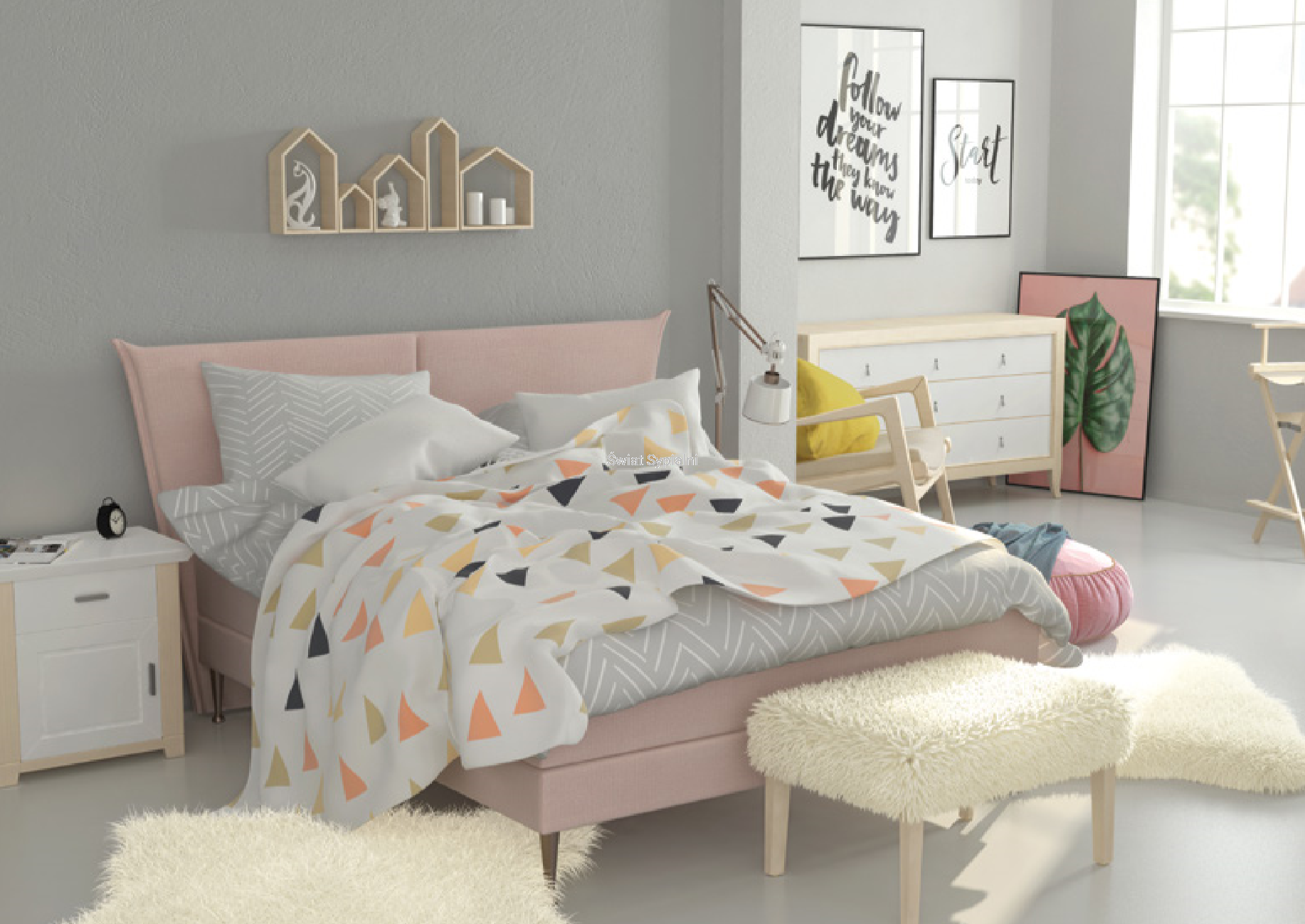 W dosłownym tłumaczeniu „ladylike” oznacza wytworny. To styl w projektowaniu wnętrz, który jest nie tylko kobiecy, ale także czarujący i lekki. Nie boi się nieoczywistych zastosowań rozmaitych odcieni różu i śmiało łączy je z chłodnymi szarościami. Łóżko, które nazwaliśmy LADYLIKE, jest subtelne i nieoczywiste w swojej formie. Jego zagłówek stworzony jest z dwóch części w kształcie nieregularnych kwadratów, lekko rozszerzonych w prawym i lewym krańcu. Łóżko będzie pięknie komponować się z puchatymi, pastelowymi poduszkami, a poszczególne modele nóżek mogą całkowicie zmienić jego charakter. Na metalowych przywodzi na myśl skojarzenia z frywolnymi latami 60., z kolei na drewnianych wygląda nieco bardziej elegancko. To Ty decydujesz, jakiej aranżacji stylu potrzebujesz!