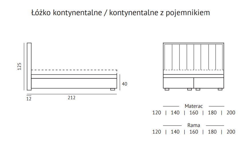 2. Łóżko kontynentalne z pojemnikiem (składa się z dwóch podstaw kontynentalnych oraz unoszonego do góry wieka)