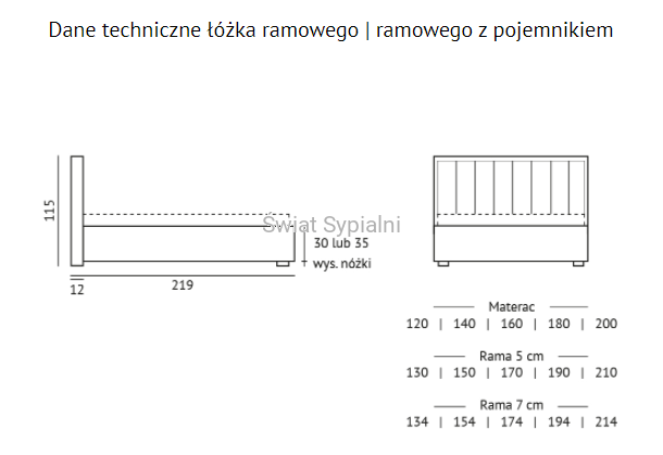 *Jest możliwość zamówienia łóżka o grubości ramy 7cm a także o wysokości ramy 35cm (wpisz informację w uwagach lub zadzwoń 502-685-450)