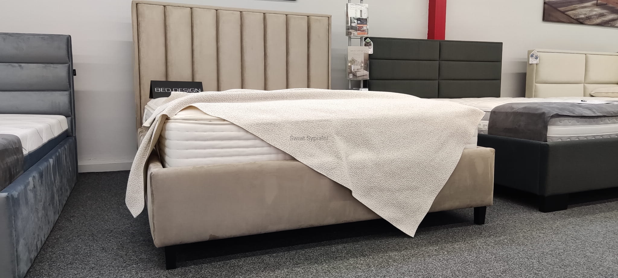 Na zdjęciu: rozmiar łóżka 160/200, wysokość zagłówka 115cm "Standard", noga metalowa wysokość 5cm