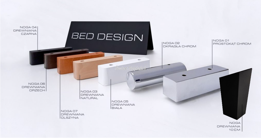 1. Nogi drewniane, wysokość 10cm (nóżki w kolorach: biały, naturalny, olcha, orzech, czarny)