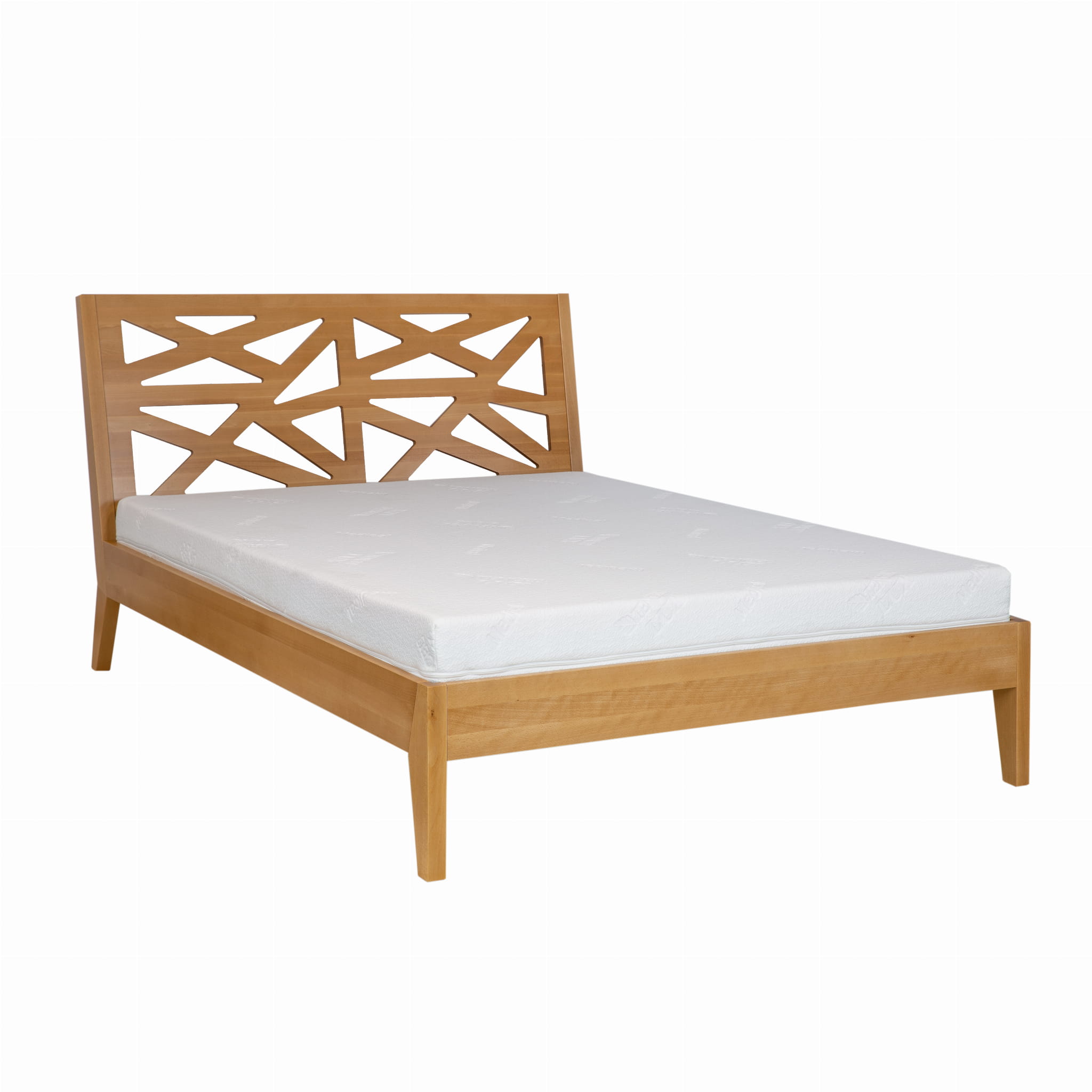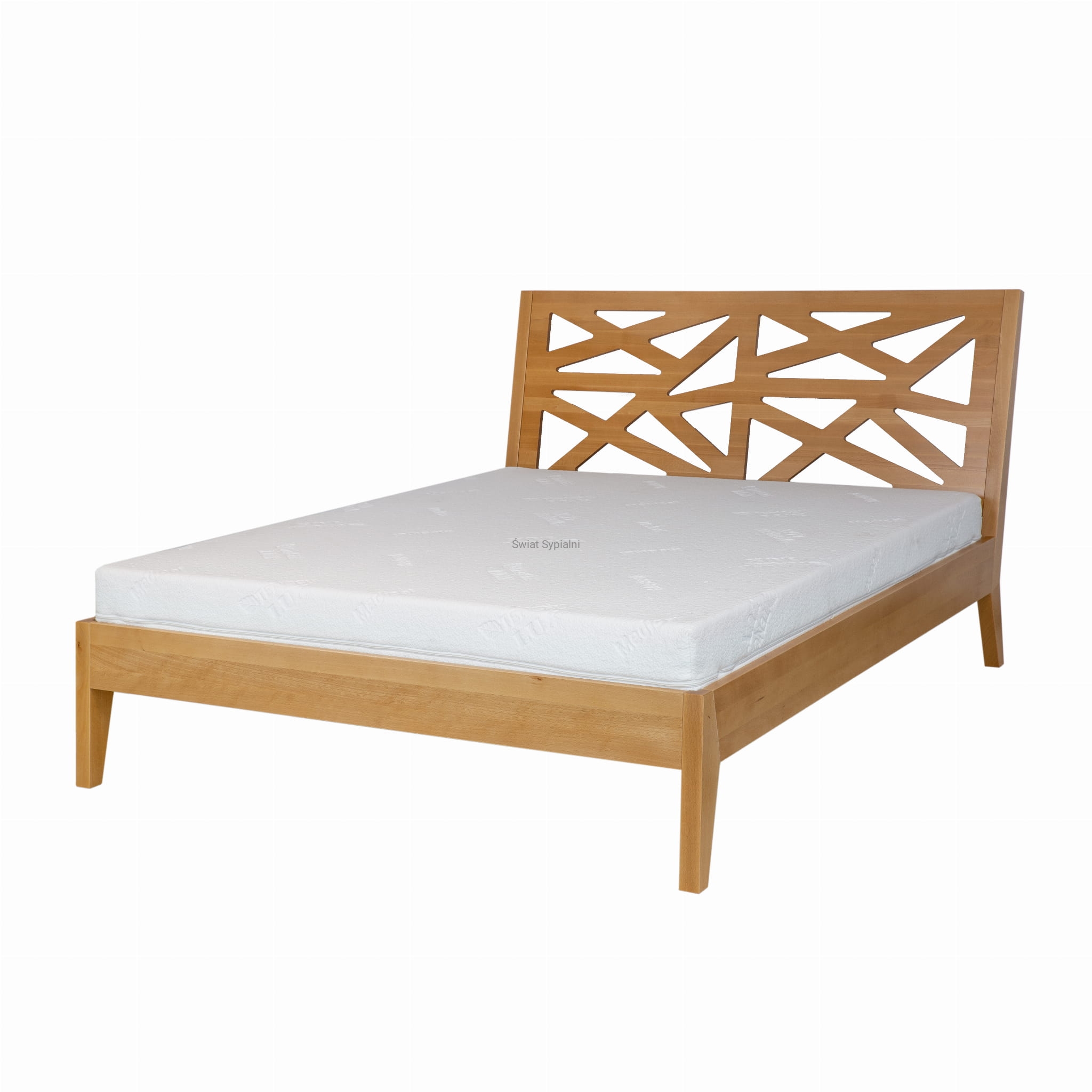 Bardzo nowoczesne i oryginalne łóżko LK164, wykonane z litego drewna bukowego. Ażurowy, wygięty zagłówek, wystający ponad ramę łóżka, oprócz funkcji praktycznej pełni przede wszystkim funkcję dekoracyjną. Niepowtarzalny wzór wyróżni się pośród tradycyjnych zagłówków i podkreśli indywidualny charakter pomieszczenia. Wygięte nóżki przy zagłówku oraz małe, ozdobne przednie nóżki mebla, nadają lekkości całej konstrukcji i podkreślają jego wyjątkowość. Całość sprawia, że łóżko LK164 może stać się centralnym elementem aranżacji każdej sypialni.