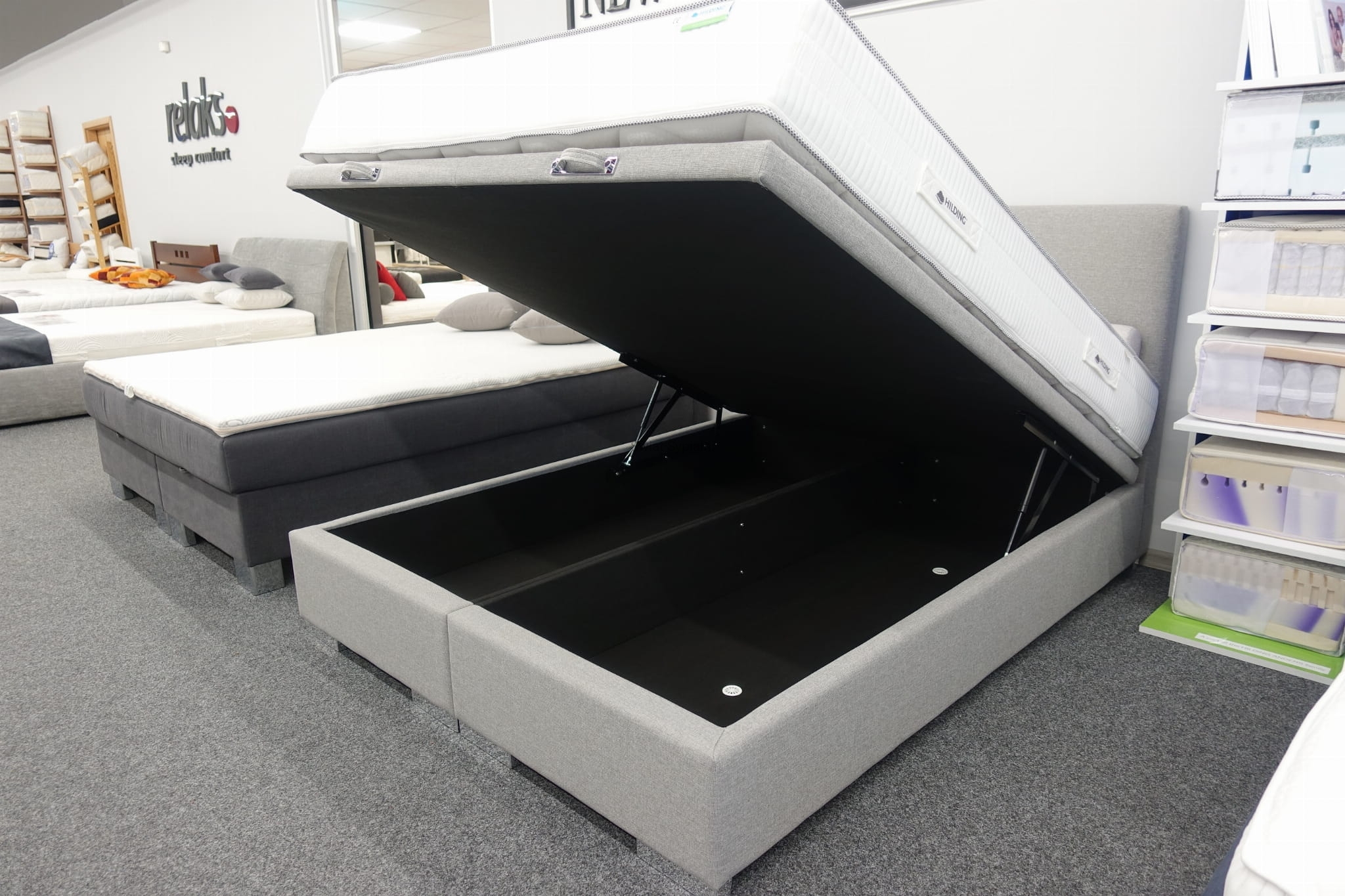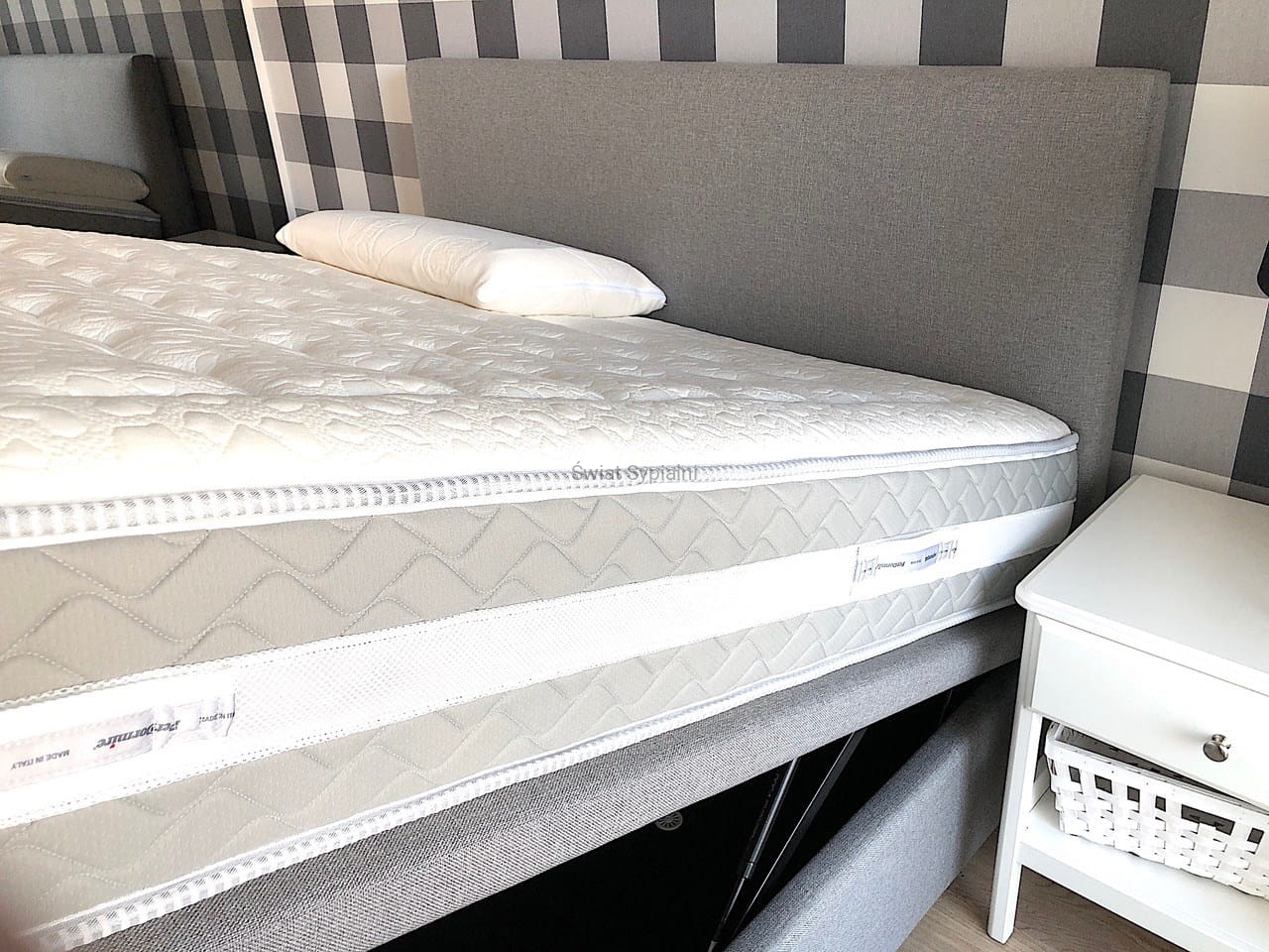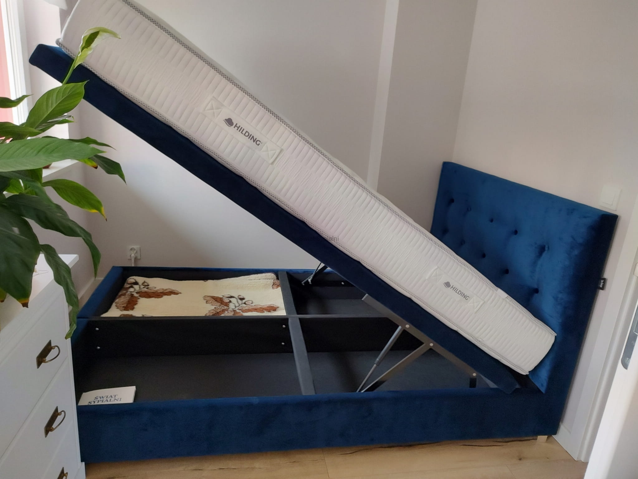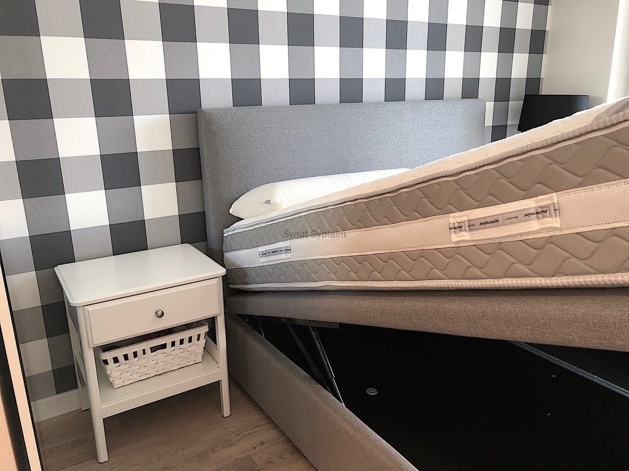 Łóżko kontynentalne z pojemnikiem na pościel