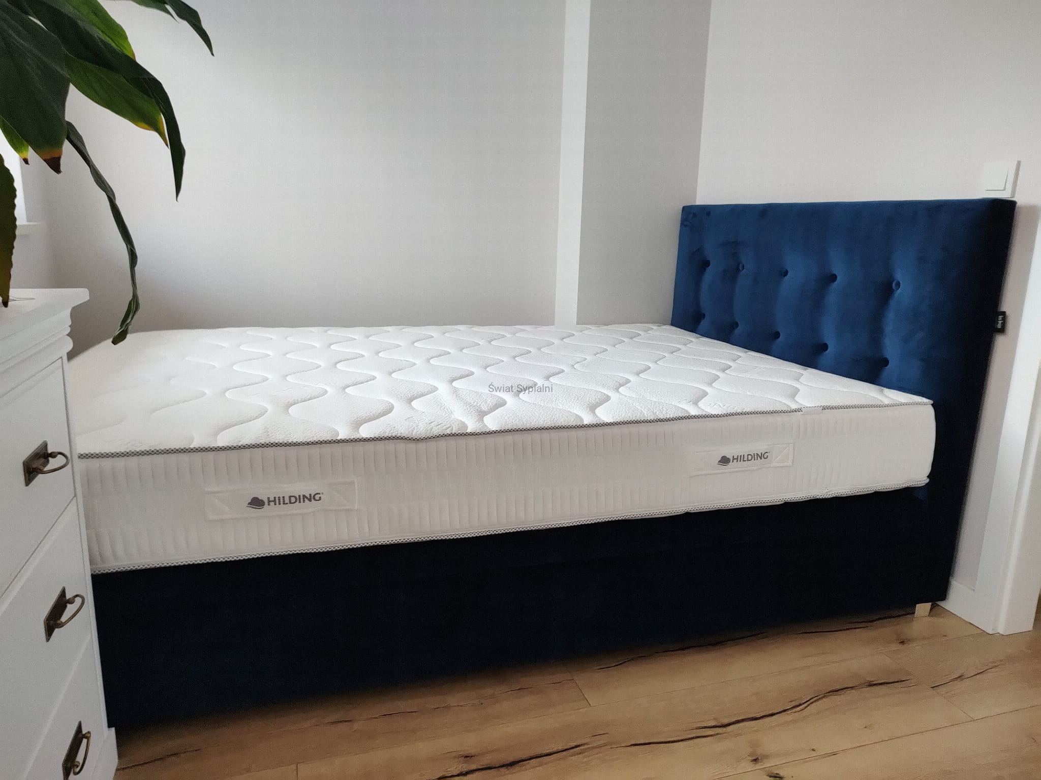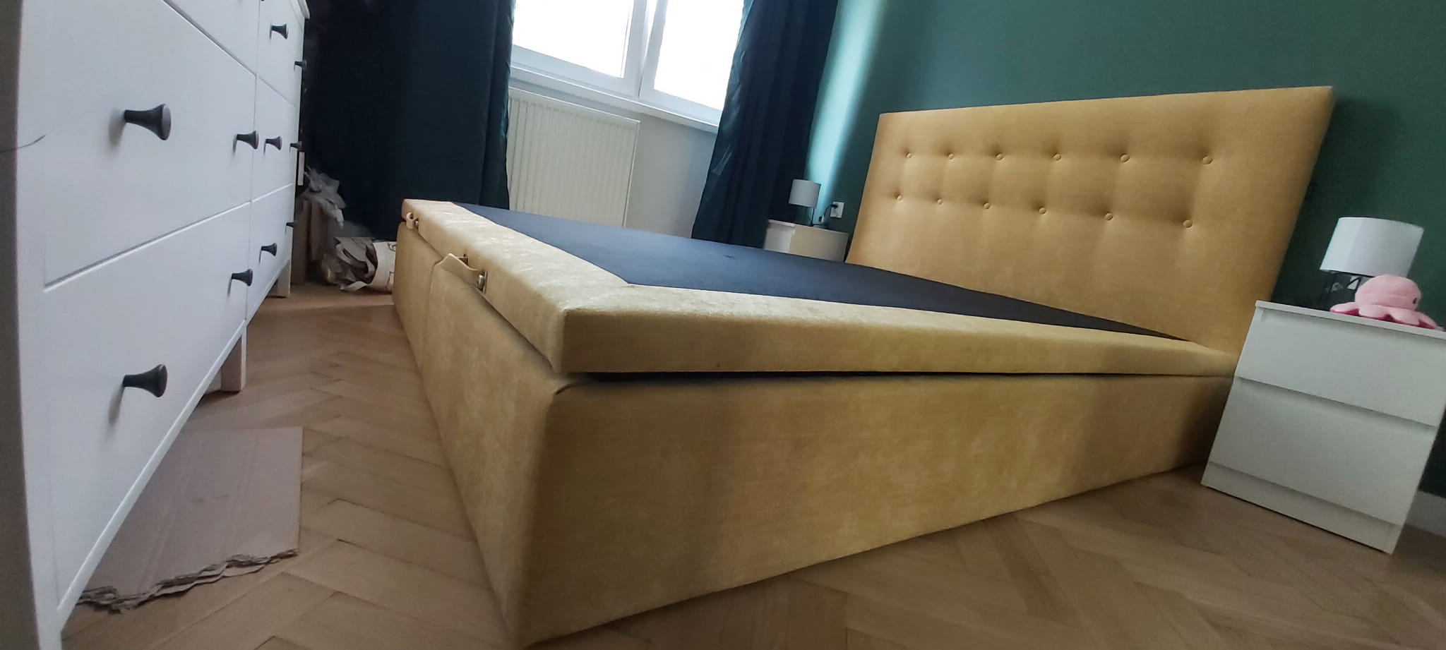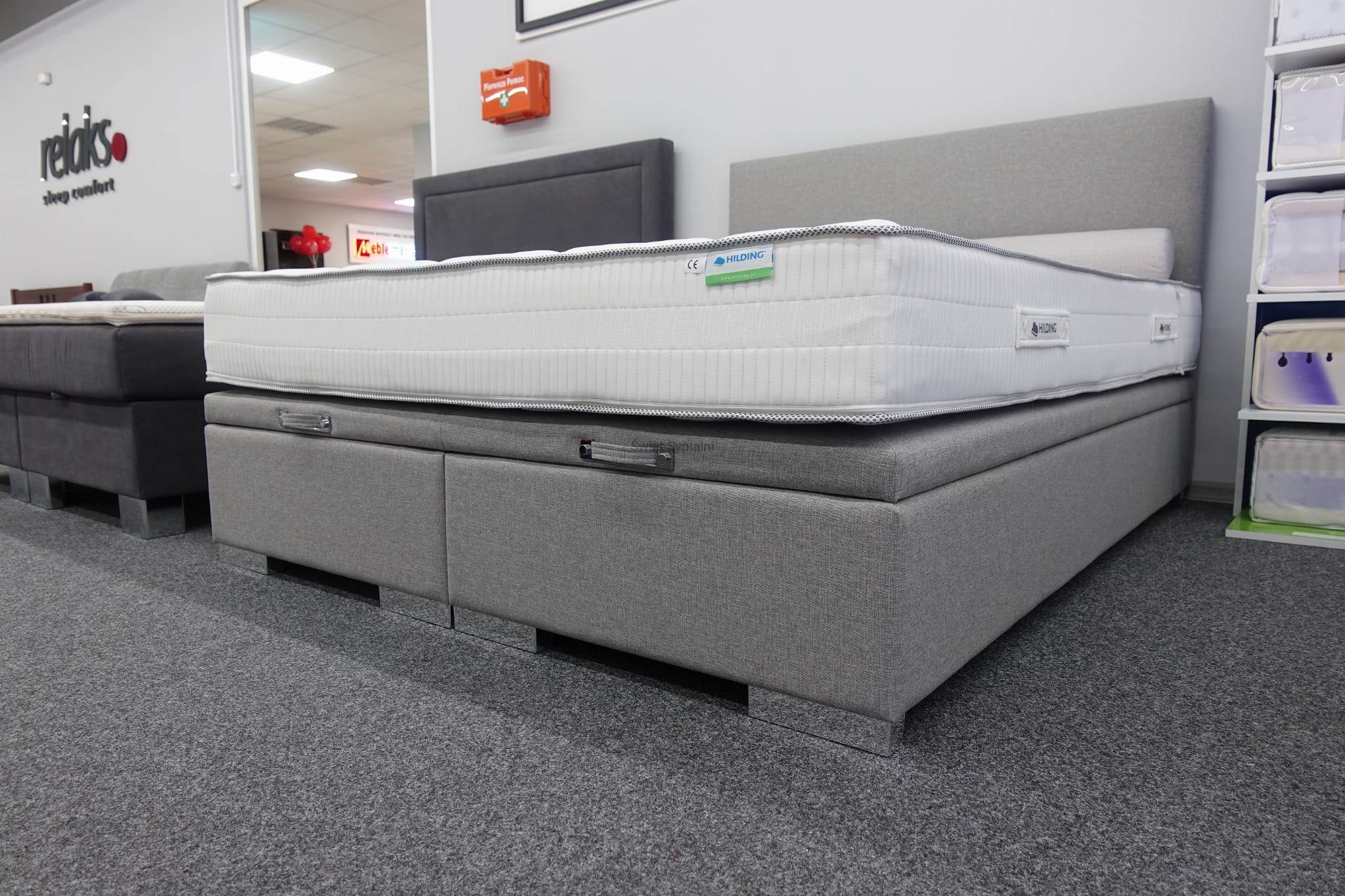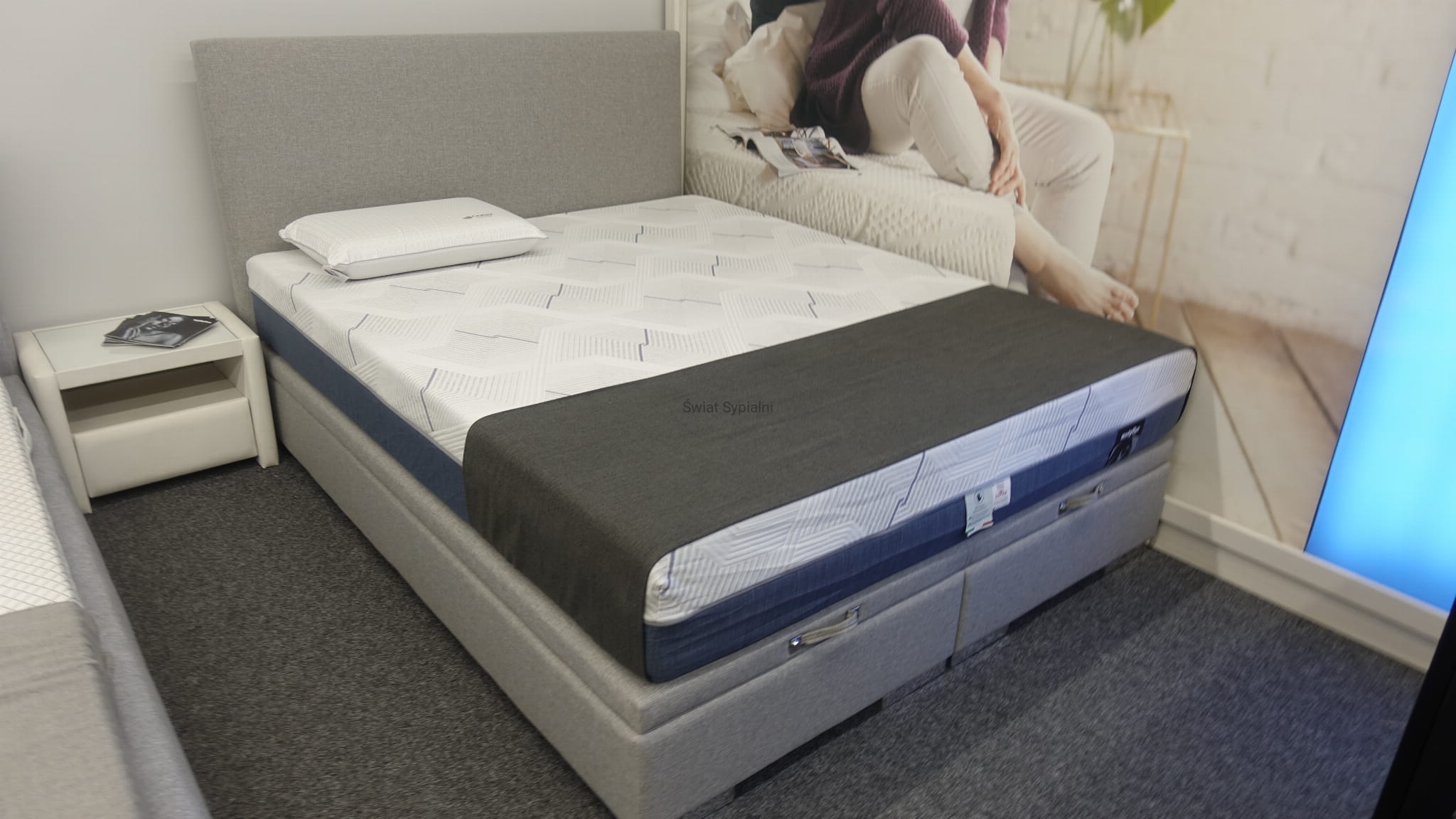 Łóżko kontynentalne z pojemnikiem na pościel