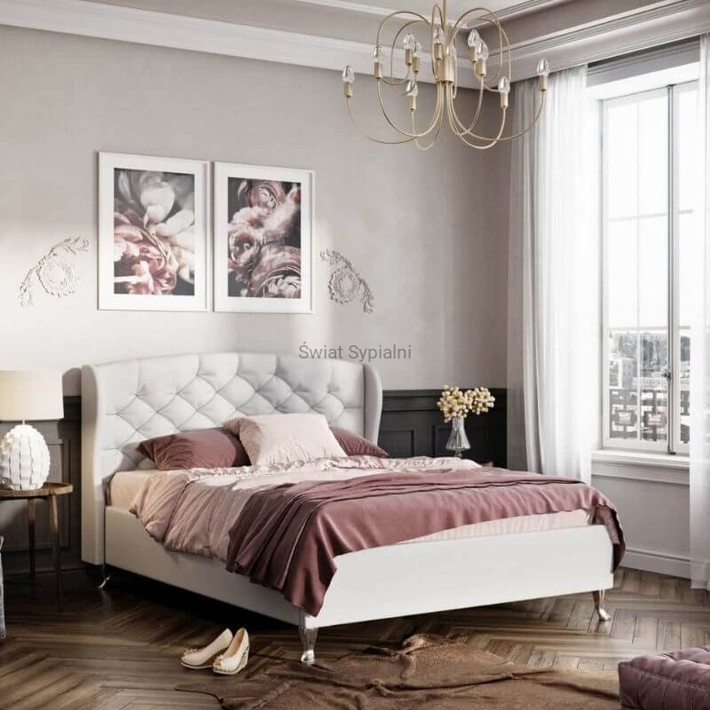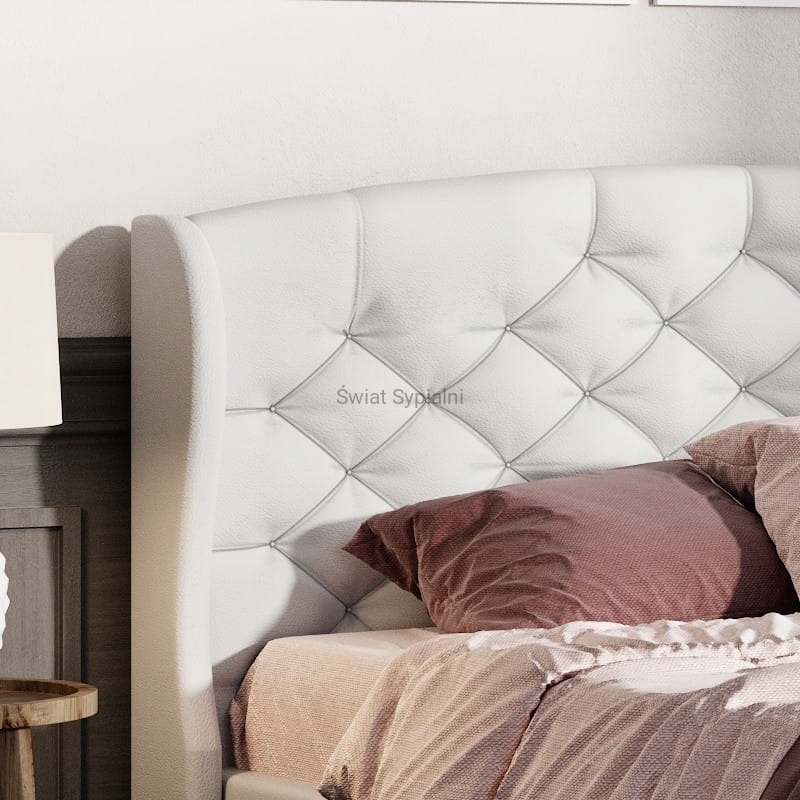 Model Genua Extra to doskonała propozycja dla tych, którzy chcieliby stworzyć eleganckie i wysmakowane wnętrze z elementami ponadczasowego francuskiego stylu. Skrzydłowe wezgłowie z efektownym pikowaniem dodaje całości miękkości i finezji i sprawia, że to łóżko będzie główną ozdobą sypialni.