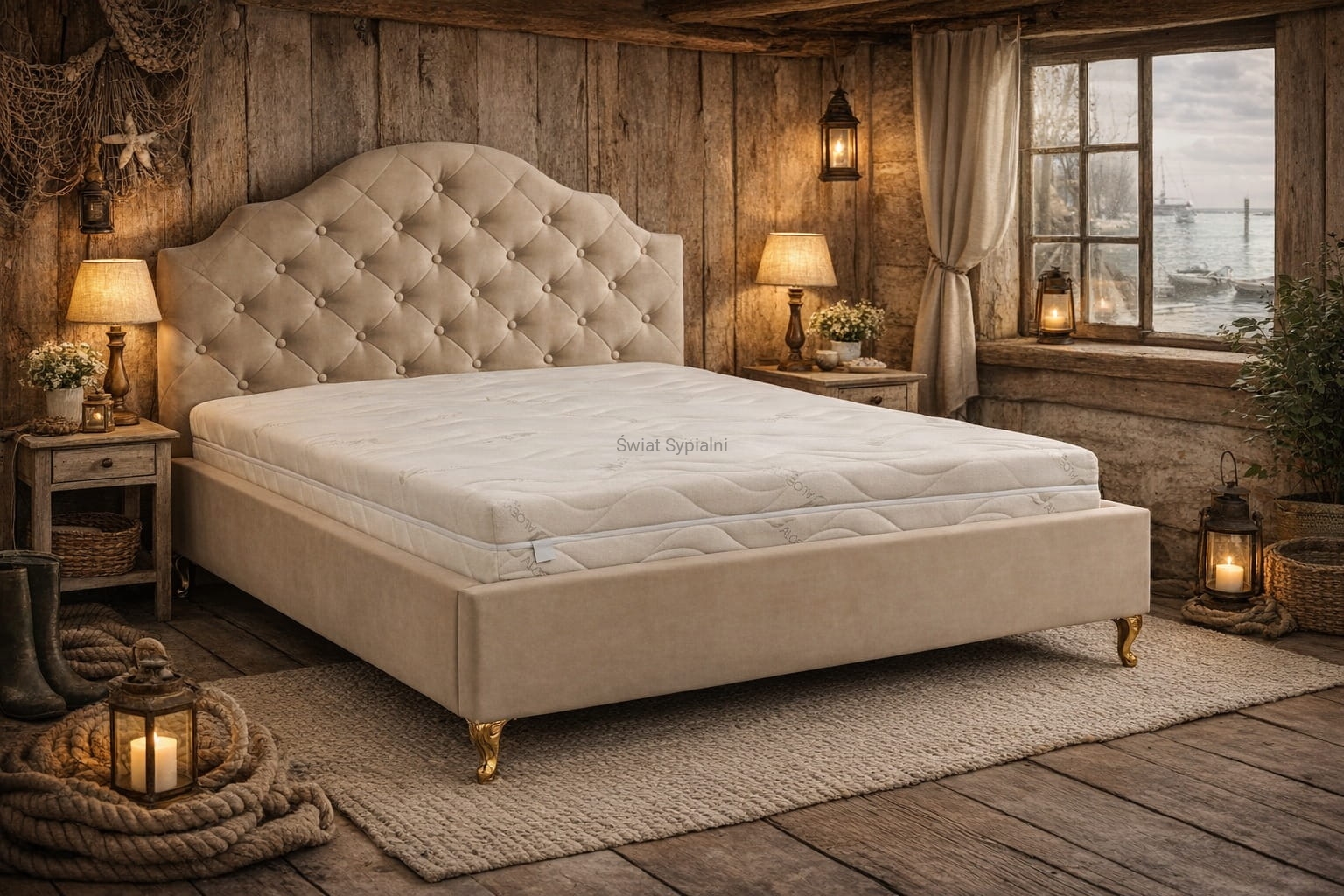 Łóżko La Donna Italcomfort to synonim elegancji rodem z książęcego dworu. Piękne wezgłowie o stylizowanych kształtach, delikatnie pikowane, doskonale komponuje się przede wszystkim w sypialniach utrzymanych w stylu klasycznym. Nie mniej, również bardziej nowoczesne wnętrza miło gościć będą to łóżko. Dla uświetnienia sypialni, piki w wezgłowiu łóżka, można dodatkowo zdobić guzikami lub kryształkami. To piękne wzornictwo charakteryzuje się także solidną konstrukcją, pozwalającą na bezstresowe, długoletnie użytkowanie. Eleganckie wykończenie, z szczególną dbałością o detale tapicerskie, to zasługa naszej doświadczonej ekipy zawodowych tapicerów.