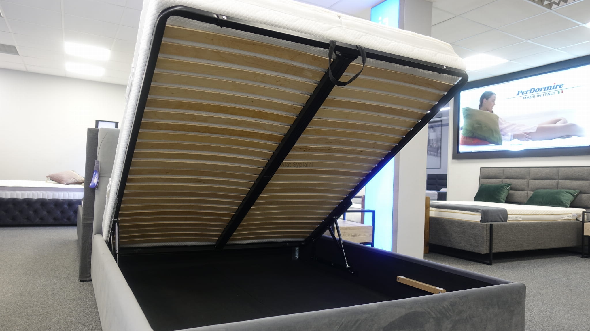 Stelaż metalowy do łóżka z pojemnikiem zapewnia użytkownikowi zadowalającą jakość przy zachowaniu bardzo przystępnej ceny. Budowa tego stelaża została oparta na systemie elastycznych listew wykonanych z warstwowo klejonego drewna liściastego umocowanych na metalowej ramie. Belka środkowa tejże ramy posiada obustronne dodatkowe wzmocnienie. Małe odstępy pomiędzy listwami pozwalają na wykorzystanie ramy do każdego typu materaca.