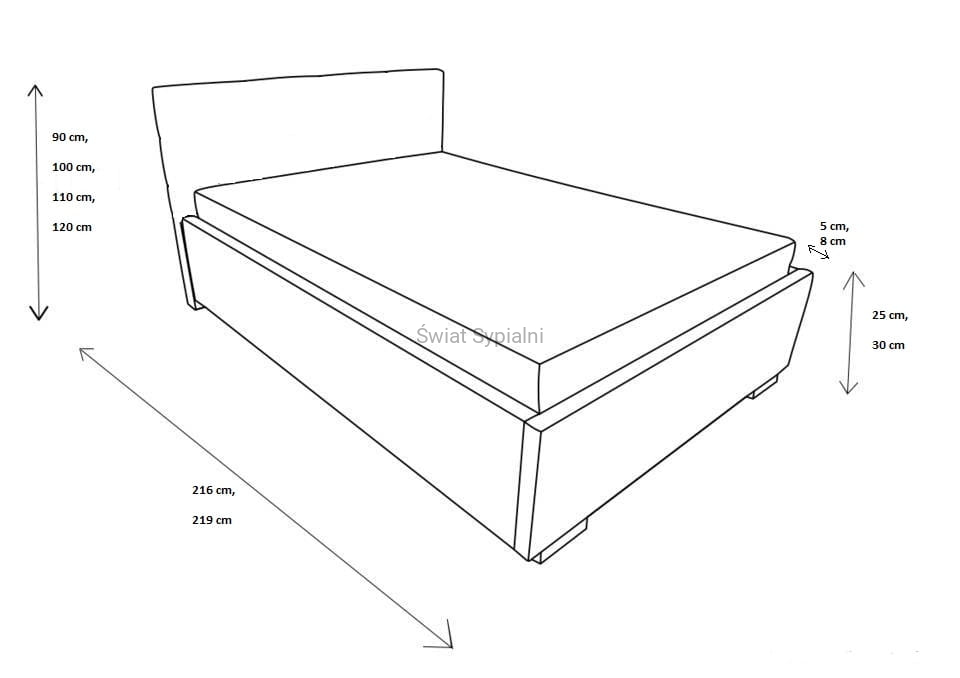 *Wysokość ramy wpływa na głębokość pojemnika na pościel. Do łóżek z pojemnikiem na pościel polecamy wysokość ramy 30cm.