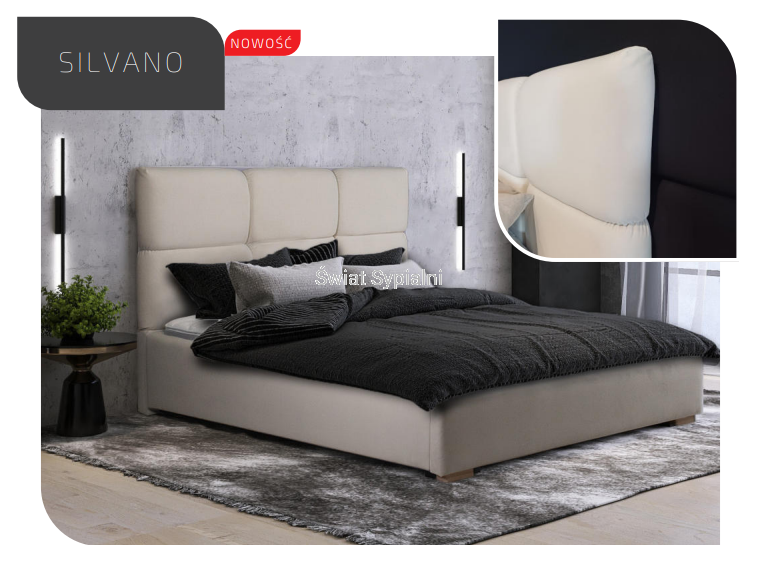 SILVANO łóżko tapicerowane light (z pojemnikiem lub bez pojemnika) - Bed Design