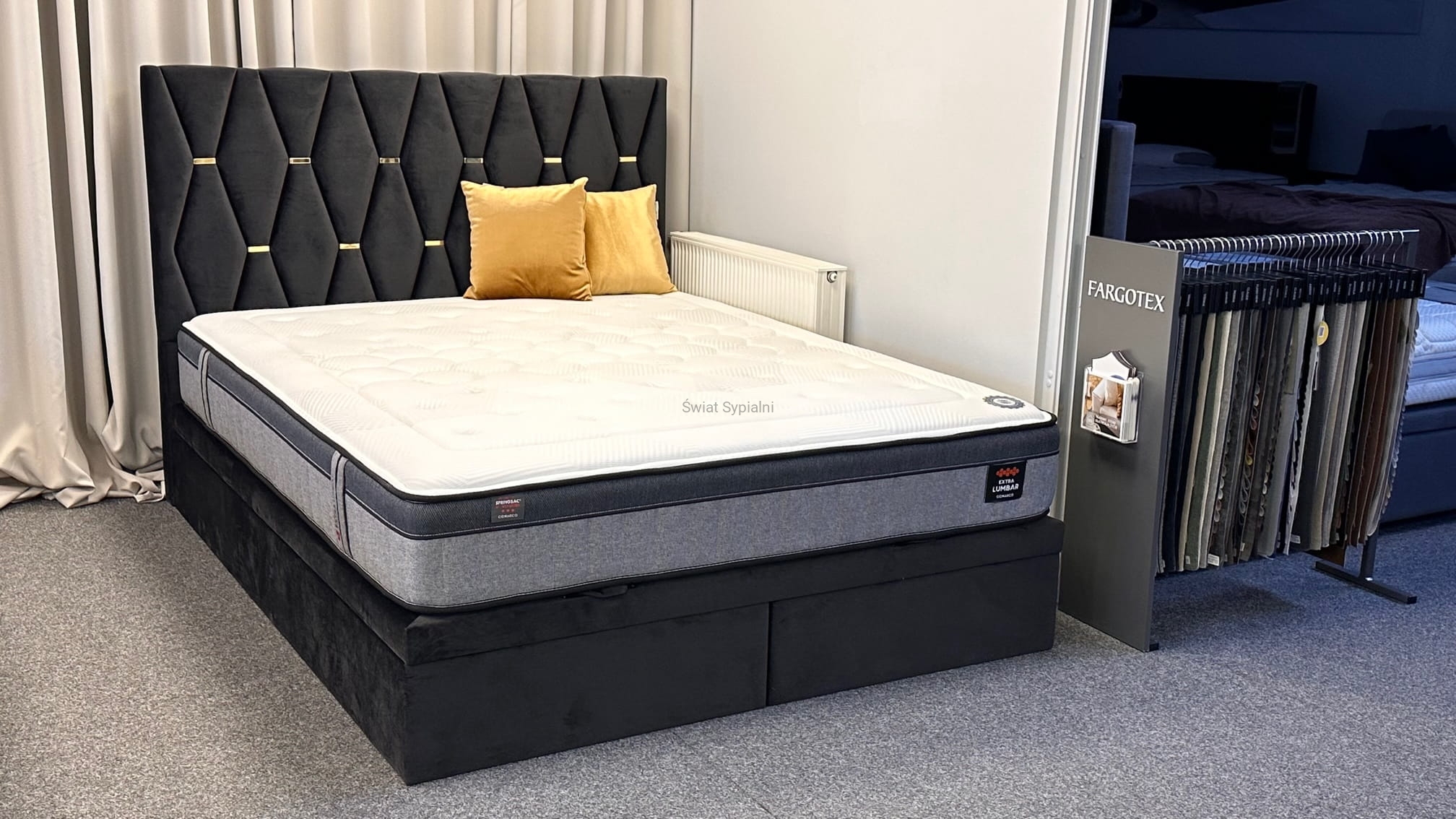 Uwaga! Materac jest elementem dodatkowym. Nie wchodzi skład podanej ceny łóżka. Na zdjęciu został przedstawiony materac otapicerowany "Elitte 27 Lux" Link -->
