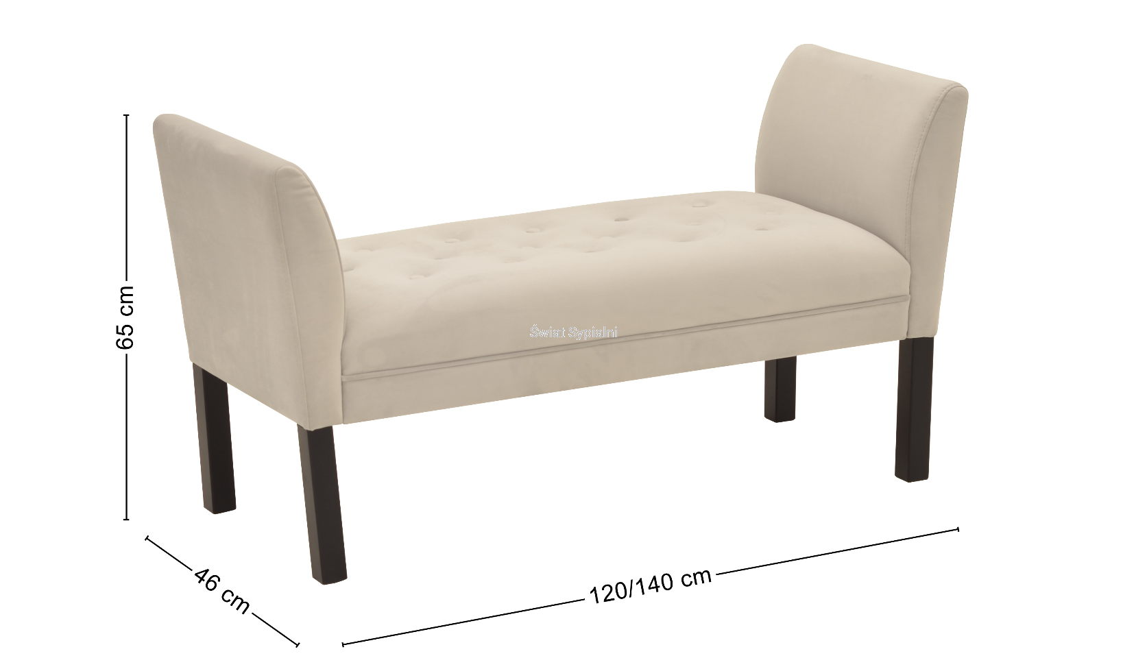 wymiary zewnętrzne: szerokość: 120/140 cm, głębokość: 46 cm, wysokość: 65 cm