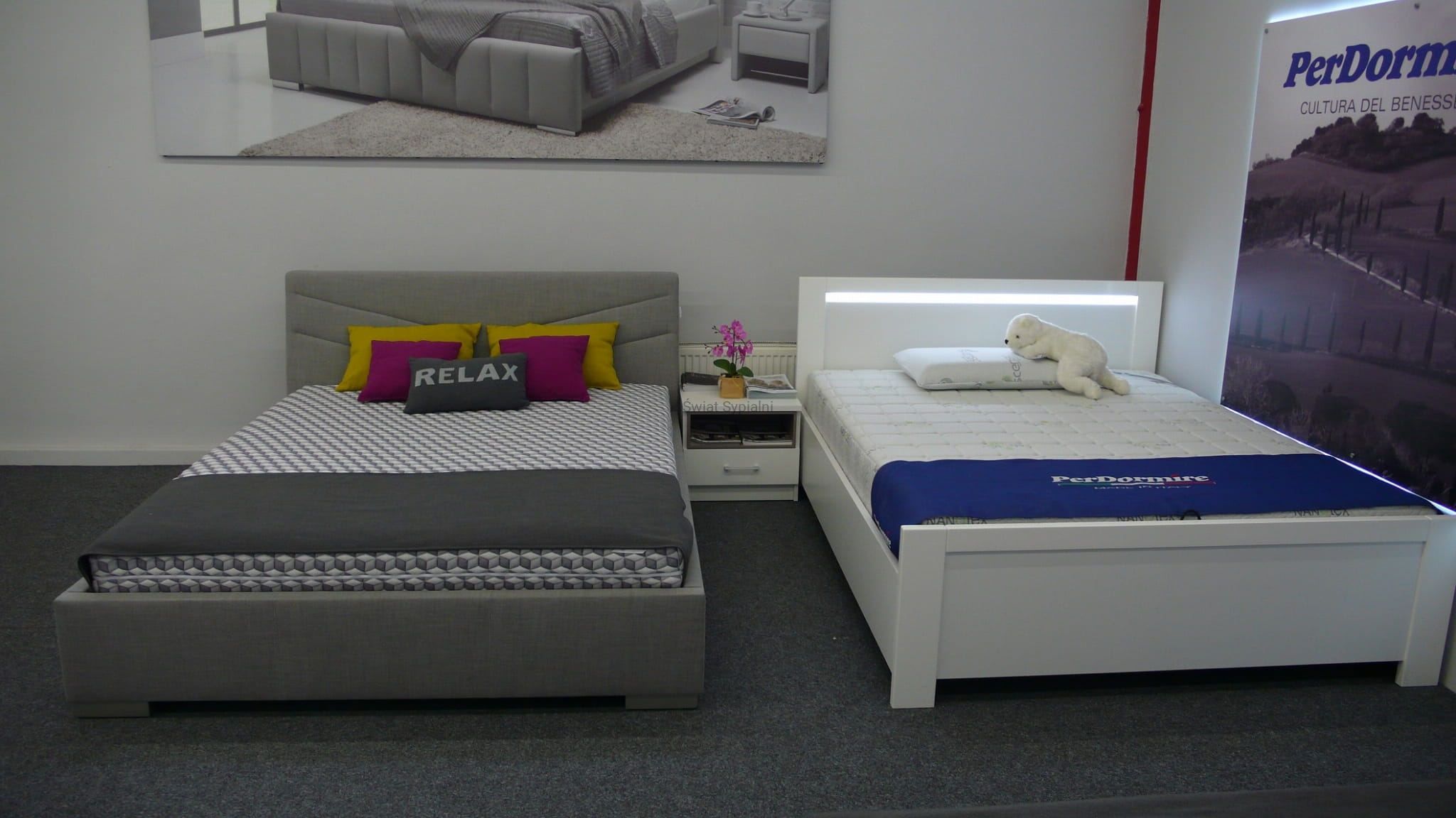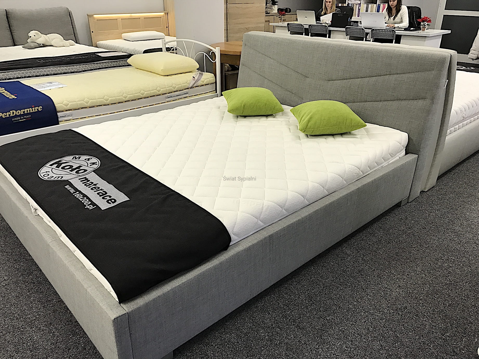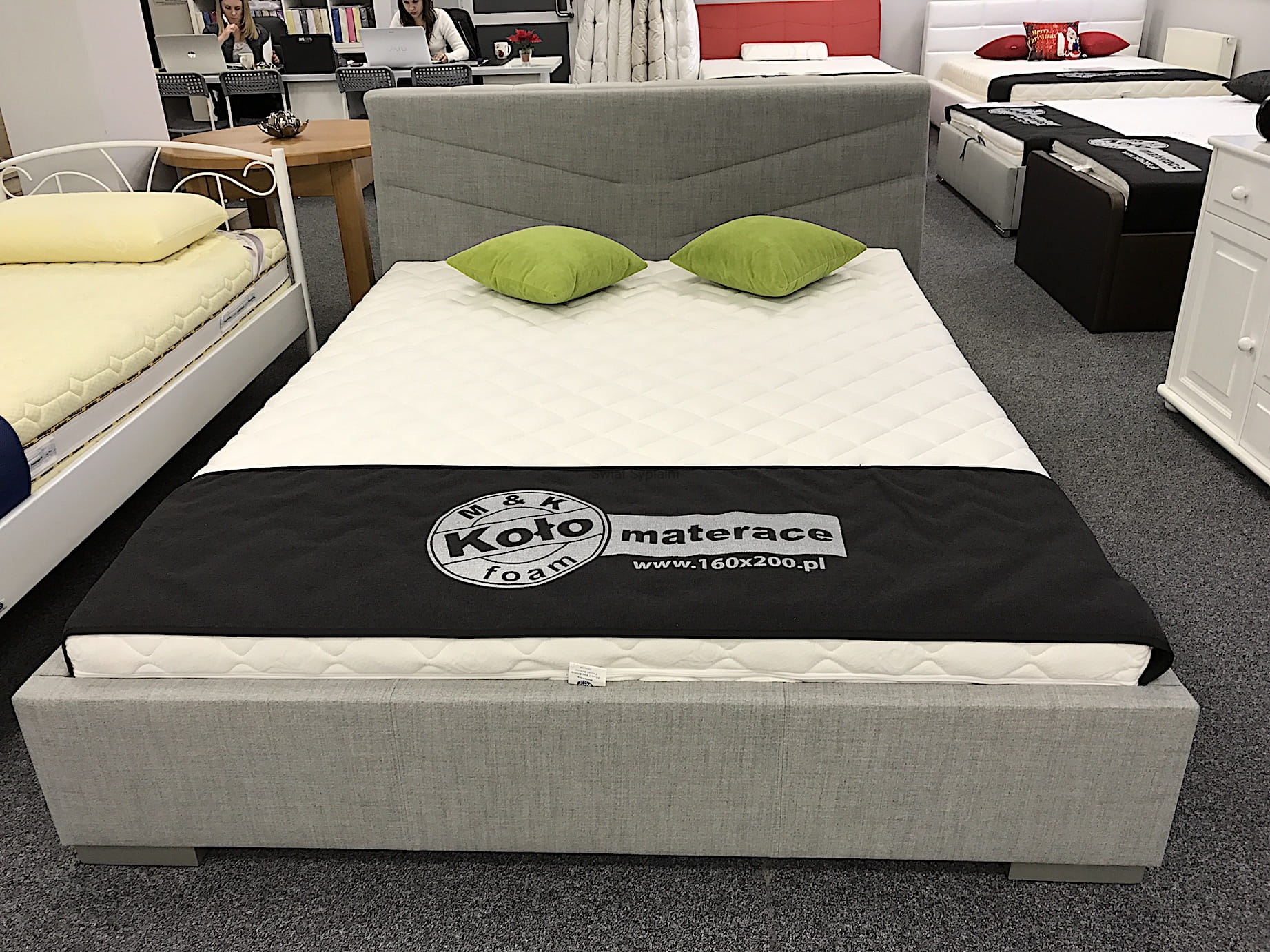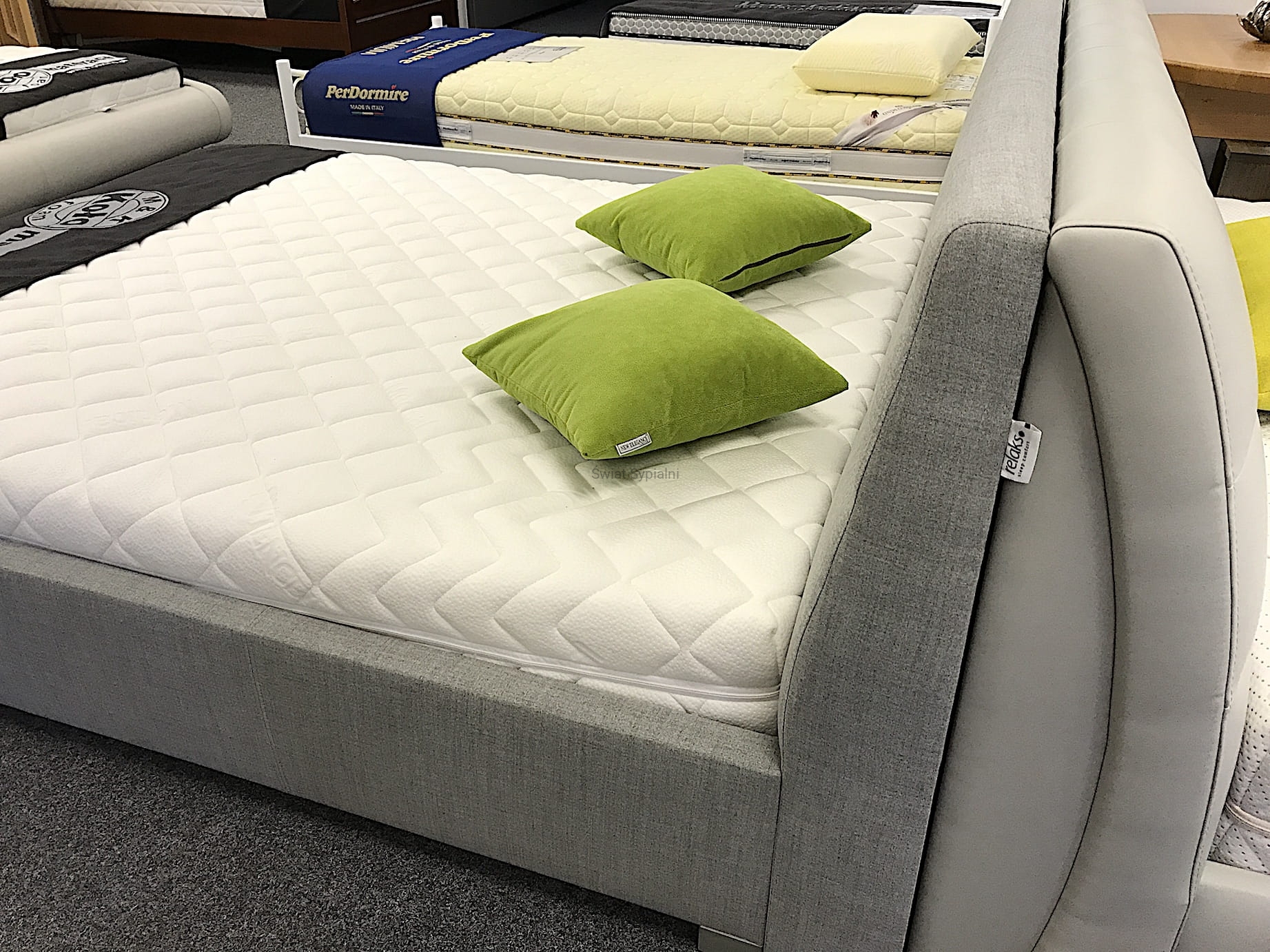 - Łóżko do zamówienia w różnych rodzajach i kolorach obić. Obicia do obejrzenia w salonie.