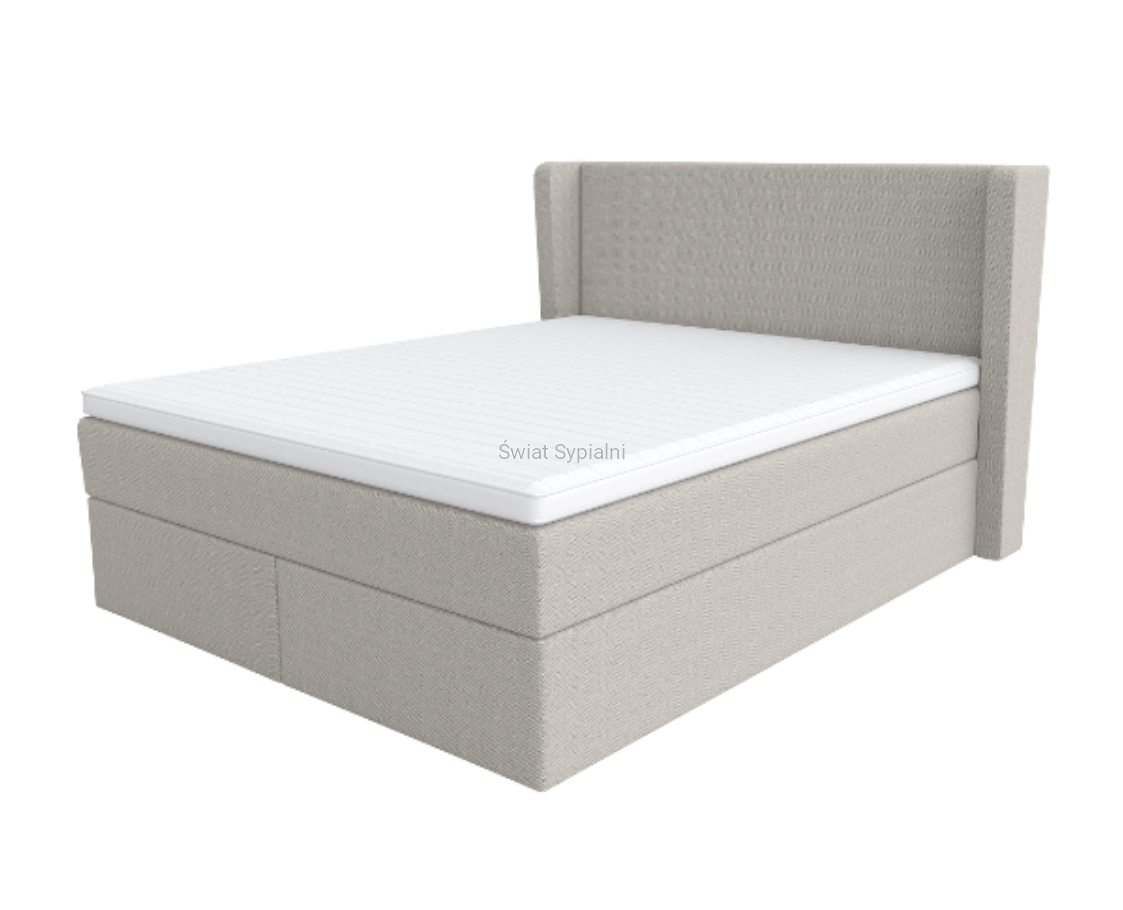 Box podnoszony - baza swoim wyglądem przypomina model kontynentalny, ale dodatkowo posiada pakowny pojemnik na pościel, umiejscowiony pod płaszczyzną materaca. Dzięki podnoszonemu stelażowi łóżka masz łatwy dostęp do pojemnika. Także w tej opcji możesz zdecydować się na tapicerowane boki materaca. Wygodne uchwyty możesz bez problemu schować pod stelażami, dzięki czemu będą one niewidoczne.