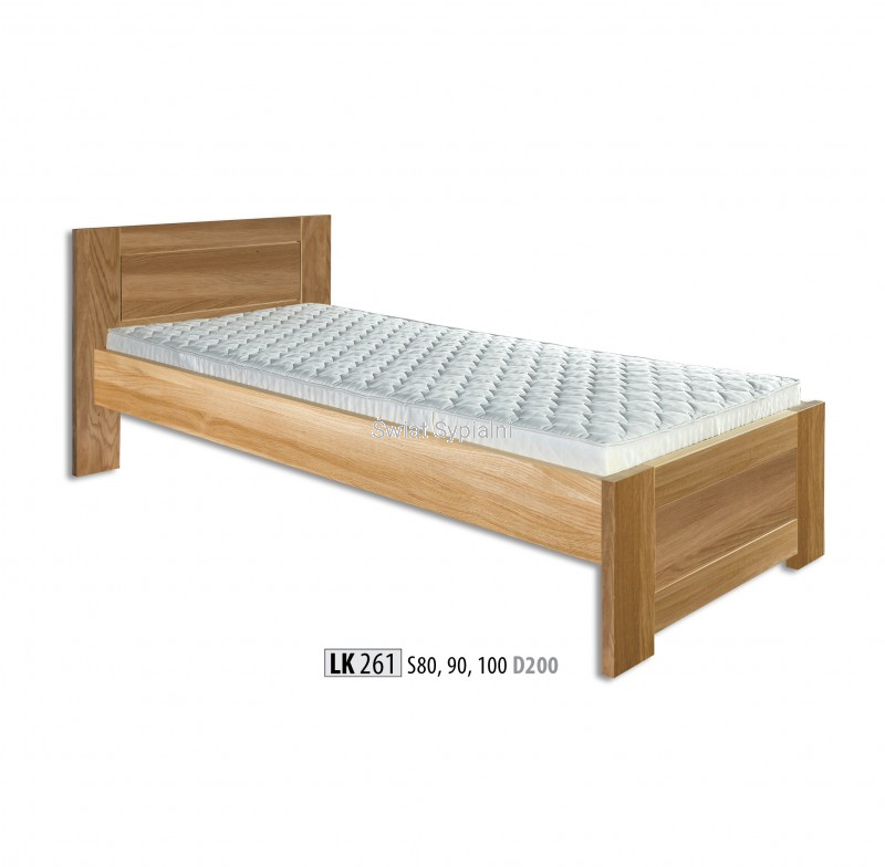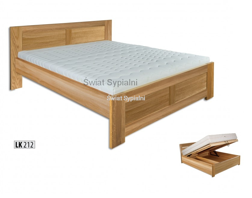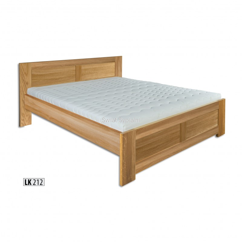 Łóżko LK 212 i LK 261 wykonane z litego drewna dębowego. Bardzo solidna i stabilna konstrukcja. Możliwość zamówienia łóżka z pojemnikiem albo bez pojemnika. Model łóżka wykonany w klasycznym prostym kształcie. Łóżko ma pełny zagłówek i zanóżek, który urozmaicają płyciny w szczytach. Proponujemy do łóżka dostawić: stolik nocny - szafkę nocną. Wolne miejsce pod łóżkiem bez pojemnika sugerujemy uzupełnić funkcjonalną szufladą. Łóżko stabilne i wytrzymałe do zamówienia w wybranym kolorze.