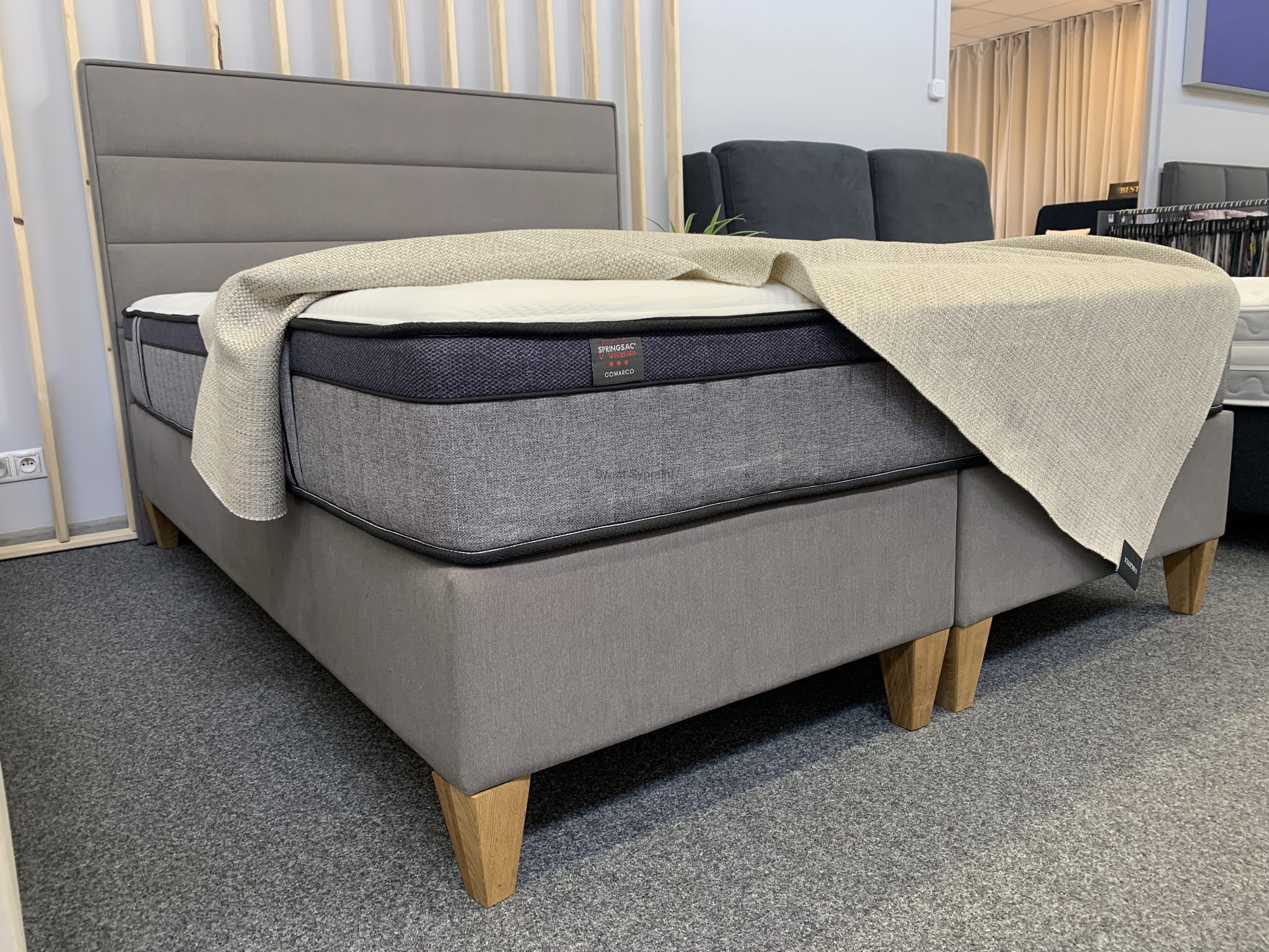 Na zdjęciu: rozmiar 160/200, podstawa kontynentalna Z, wysokość wezgłowia 125cm, nózka nr. 34, tkanina Mili 65 grupa 5 - Premium