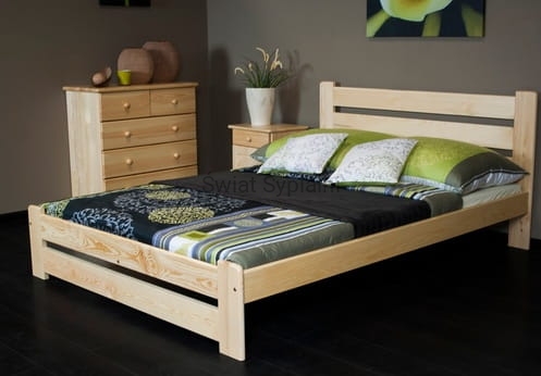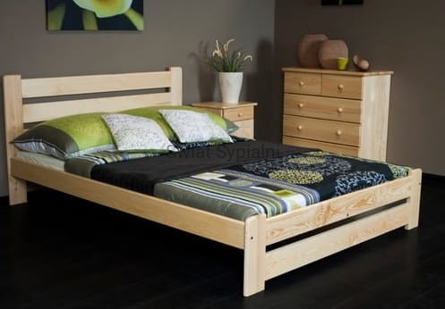 Łóżko wykonane z litego drewna sosnowego. Minimalistyczny zagłówek oraz zanóżek dają ramę by zastosować stelaż i materac o dowolnych parametrach. Do łóżka proponujemy dostawić stolik nocny - szafkę nocną. Wolne miejsce pod łóżkiem proponujemy uzupełnić funkcjonalną szufladą. Łóżko stabilne, wytrzymałe do zamówienia w wybranym kolorze a proponowanych.