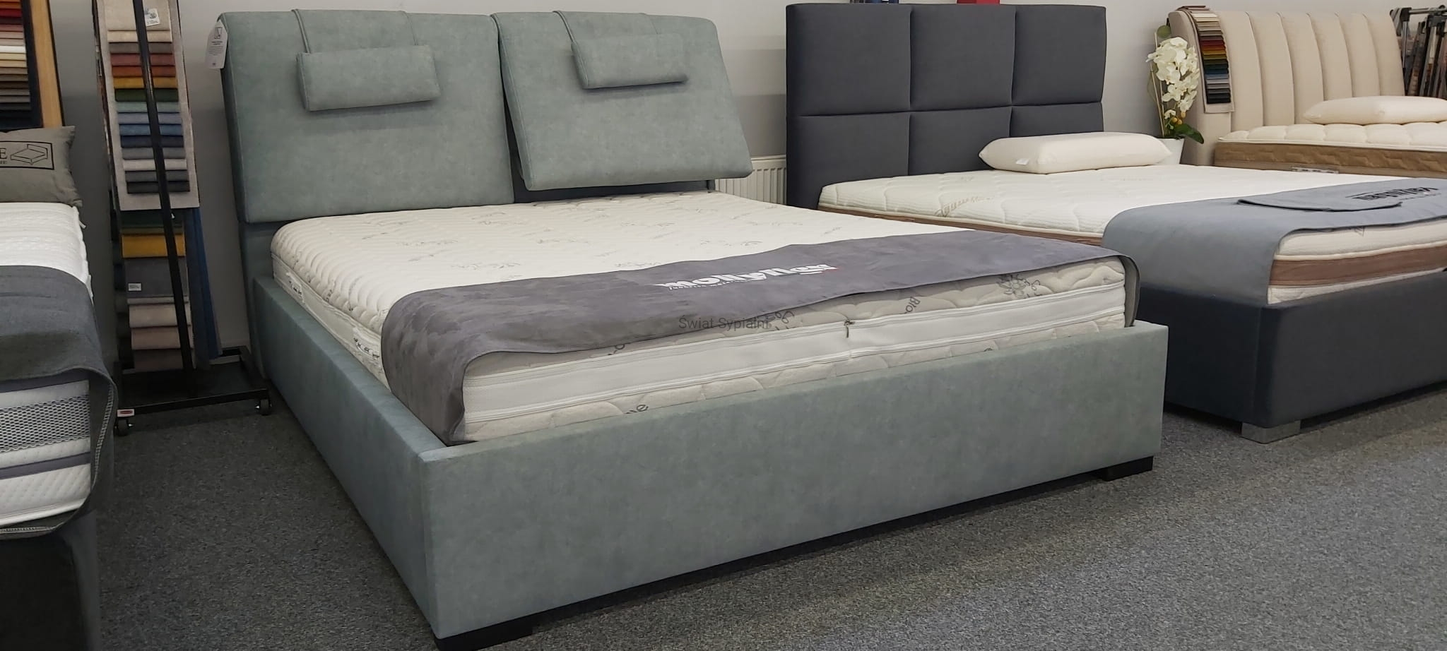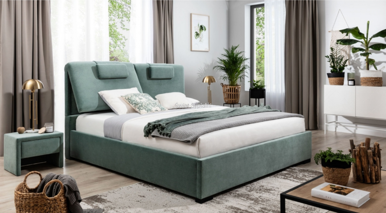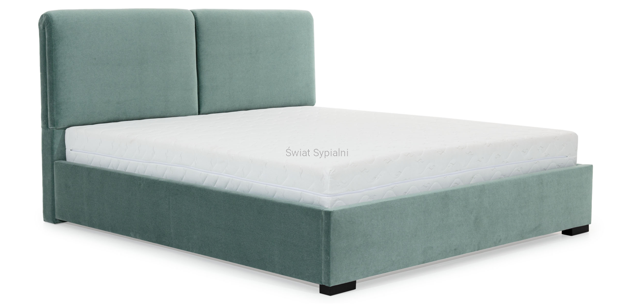 Łóżko zostało tak stworzone, aby łączyć wygodę z niewielkim wymiarem zewnętrznym oraz nowoczesnym designem a dla osób praktycznych łóżko może mieć funkcje pojemnej skrzyni. Cienkie boki po 6 cm na stronę są idealne dla osób, które mają małą sypialnię. Wezgłowie posiada dwa niezależne zagłówki idealne do opierania się. Dodatkowo są jeszcze dwa przesuwane zagłówki na ruchomym oparciu. Łóżko można zamówić w wielu kolorach i rodzajach tkanin. Rodzaj nóżek to też nasz wybór nogi można dopasować do podłogi kolorem lub wybrać najbardziej nowoczesną opcję chrom.