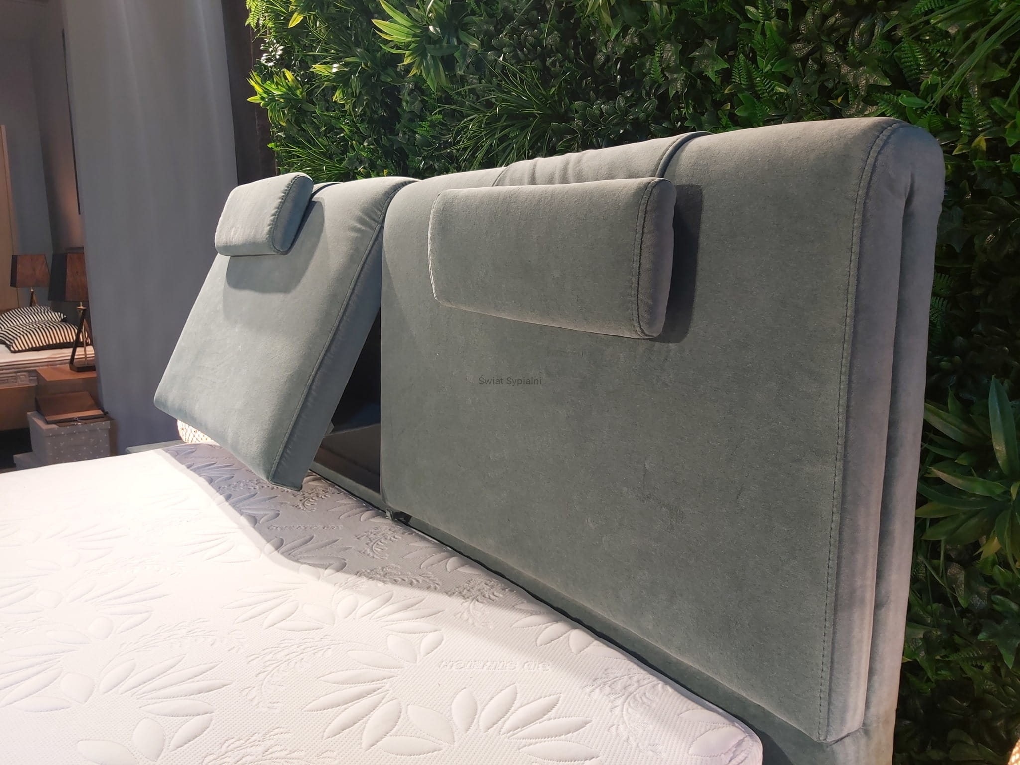 UWAGA! W łóżku z pojemnikiem rozkładane wezgłowie wymaga stosowania materaca o wysokości maksymalnie 22 cm. Wyższy materac będzie utrudniał odchylenie ruchomej części wezgłowia. W standardowym wyposażaniu 2 przesuwane zagłówki.
