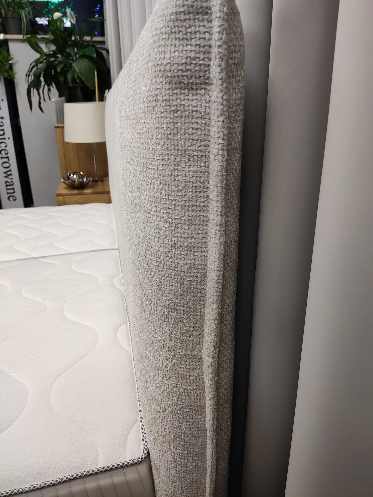 Na zdjęciu: rozmiar 160x200, zagłówek szerszy od ramy łóżka po 5 cm na stronę. Szerokość całkowita zagłówka 181,5cm