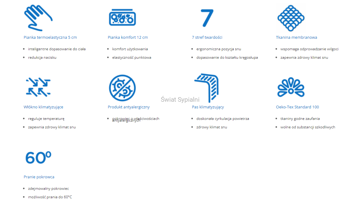 - 7 stref twardości — optymalna ergonomiczna pozycja snu