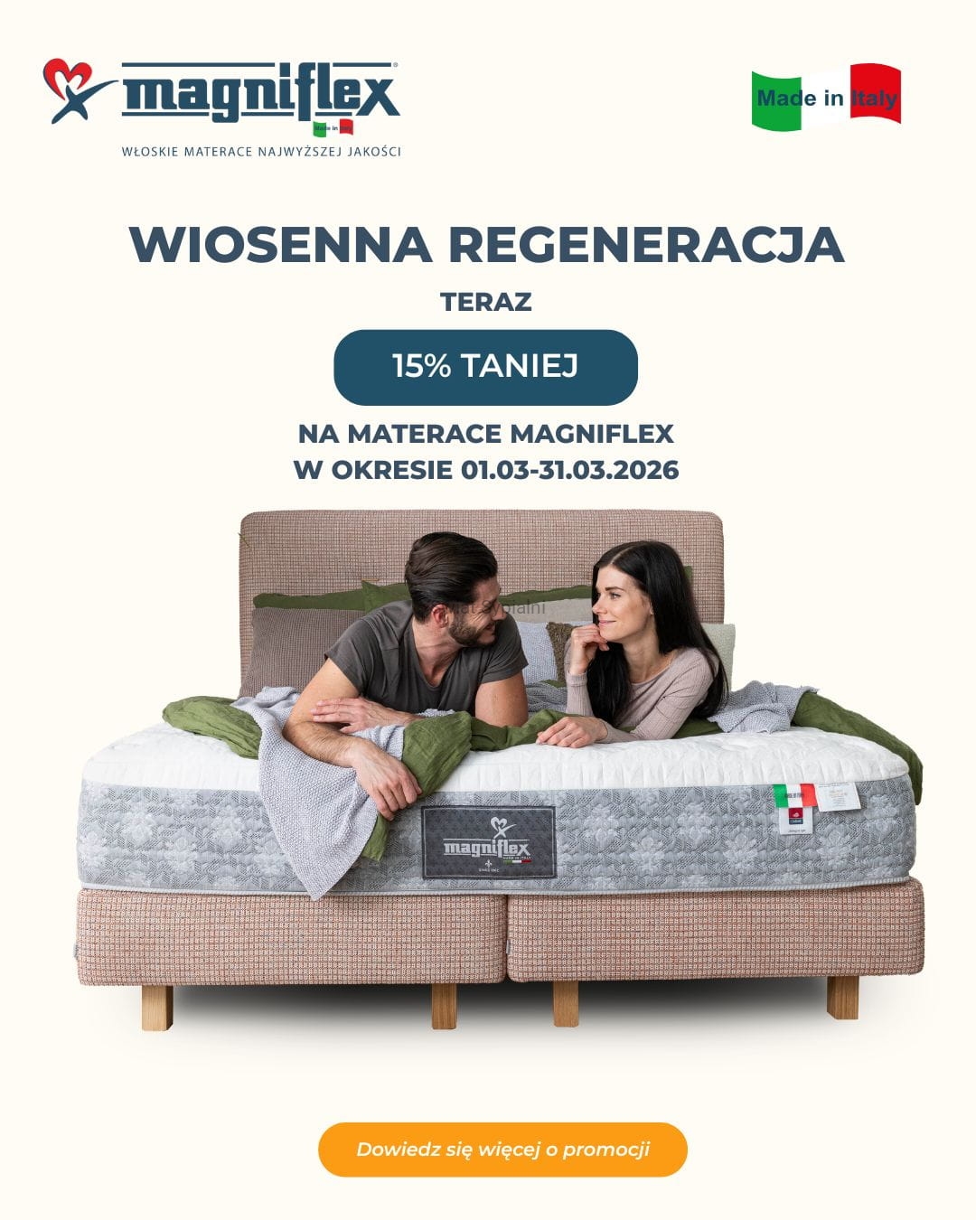 Innowacyjny termoregulacyjny oddychający materiał MagniCool, dynamicznie łączy zaawansowane technologie, reguluje temperaturę, zapewnia podczas snu wyjątkowe uczucie świeżości.