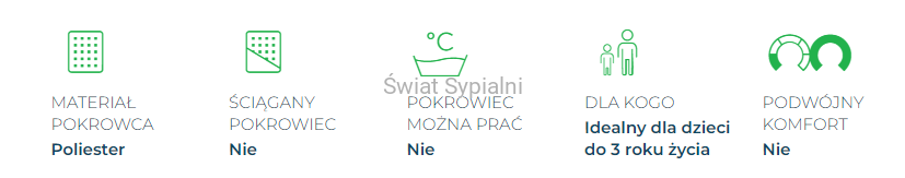 - higieniczna powłoka zapewnia najwyższą oddychalność poduszki