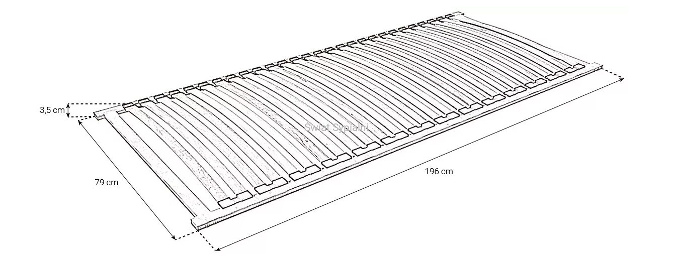 stelaż jest na długości o 4 cm krótszy, natomiast na szerokości jest węższy o 1 cm, np. 80 cm x 200 cm=>79 cm x 196 cm