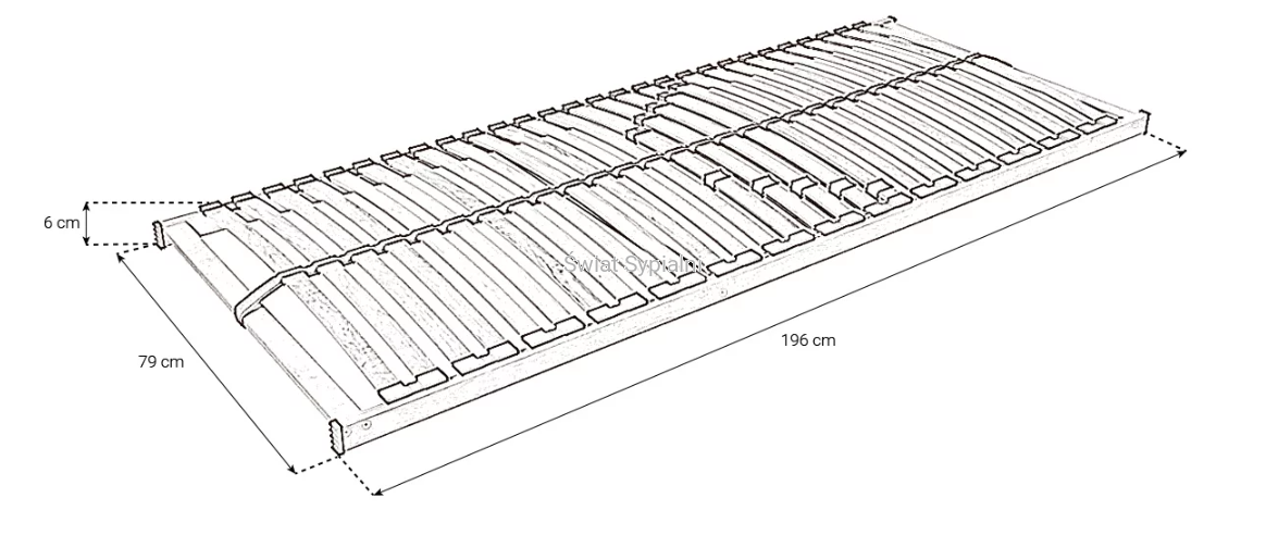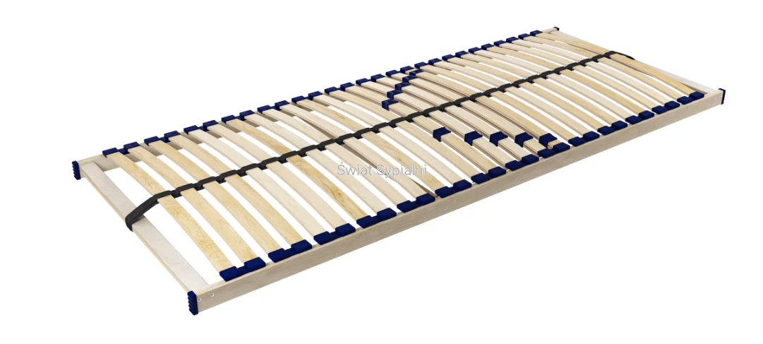 28 elastycznych listew, dodatkowa regulacja twardości. Stelaż w kartonie do samodzielnego montażu. Stelaże należy stosować na listwach bocznych zainstalowanych wzdłuż ramy łóżka.