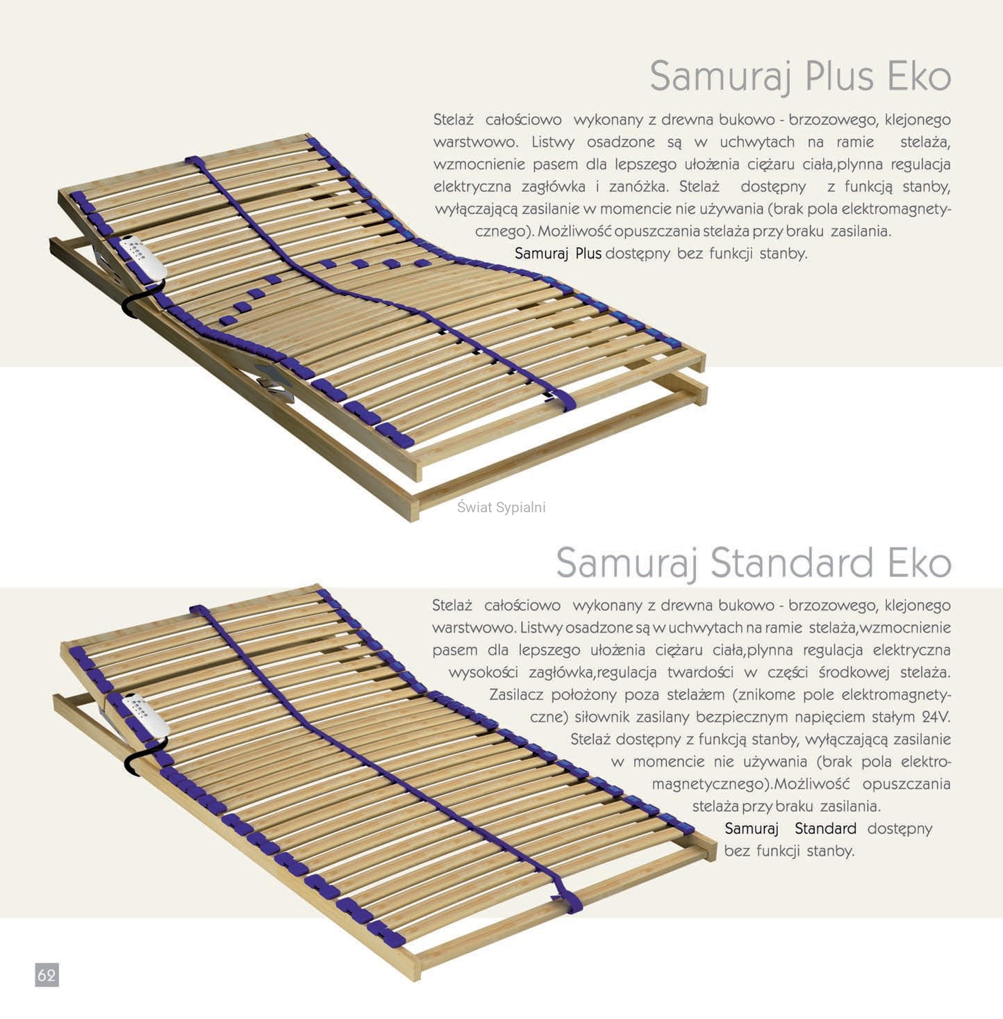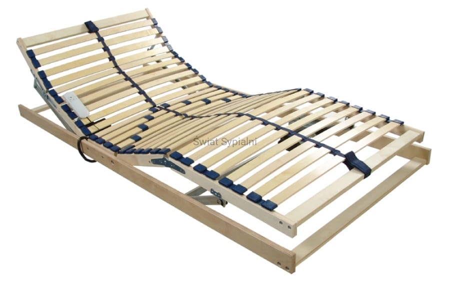 Solidna konstrukcja stelaży ma kluczowe znaczenie podczas użytkowania łóżka. To one odpowiadają za prawidłowe wsparcie dla ciała i zapewniają wentylację materaca. Ten model został wykonany z drewna brzozowego, klejonego warstwowo. Posiada listwy osadzone w uchwytach na ramie stelaża, wzmocnione pasem dla lepszego rozłożenia ciężaru ciała. Jego zaletą jest płynna regulacja elektryczna wysokości podgłówka i podnóżka. Siłownik jest zasilany bezpiecznym napięciem stałym 24V. Funkcja stand-by wprowadza układ zasilacza w stan czuwania, ogranicza pobór energii elektrycznej i daje możliwość opuszczenia przy braku zasilania.  W części środkowej ma dodatkową regulację twardości. Sprzedawany w wersji zmontowanej. Istnieje możliwość zamówienia nietypowego rozmiaru stelaża.