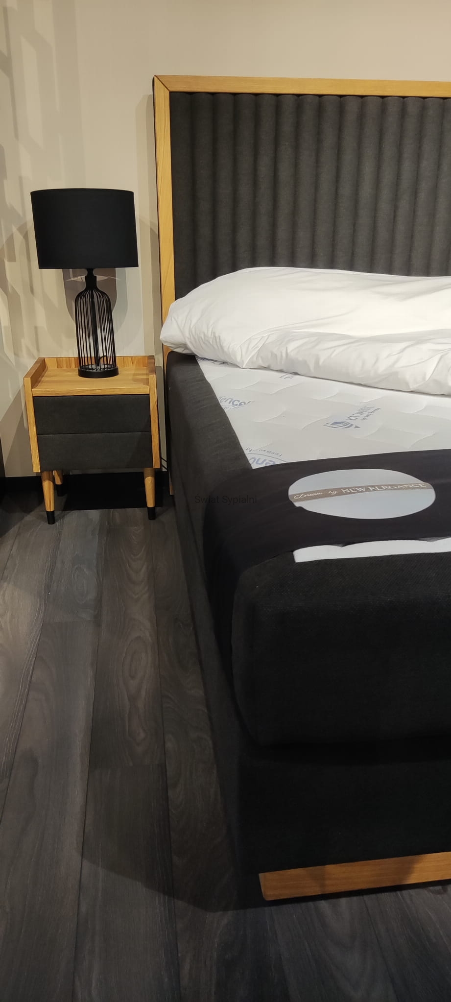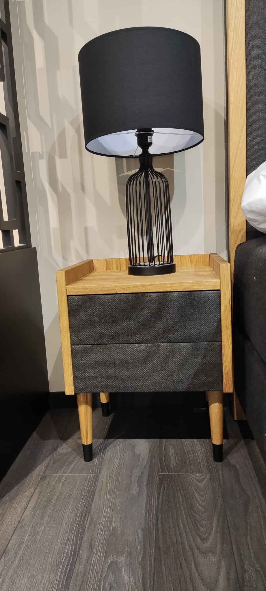 Stolik nocny Natural dębowy z tapicerką - New Elegance